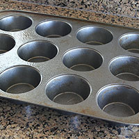 Spray a muffin tin with cooking spray. Line each slot with one piece of