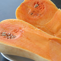 degrees. Using a sharp, sturdy knife, cut the squash in half lengthwise. |