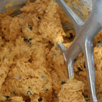 3. In the bowl of an electric mixer add pumpkin, sour cream, melted butter, egg, and vanilla. Mix with the paddle attachment until just blended.
