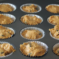 3. A spring-release ice cream scoop is really useful for these muffins. A standard scoop is the exact amount needed to fill the cup. This is a stiff batter and the release lever is helpful in transfering them.